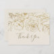 Cette carte de remerciement couleur crème aux motifs floraux dorés est parfaite pour un mariage élégant. Le design bohème moderne présente un arrangement fantaisiste de fleurs, de feuilles et de motifs botaniques dessinés à la main avec une feuille d'or fausse sur fond crème. Personnalisez le dos de la carte plate avec vos noms et un message de remerciement. Vous pouvez également laisser la section du modèle de message de remerciement vierge pour écrire une note personnalisée et réfléchie à la main sur chaque carte après leur réception. Ces cartes peuvent être utilisées pour un mariage, une fête de mariage ou tout événement spécial.