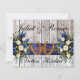 Ce design est rustique et élégant, tout en conservant son thème simple avec un arrière - plan en bois de bardeaux avec ruban bleu, des fers à cheval noués et des bouquets fleurs sauvages. Ces invitations sont excellentes pour le pays ou le mariage extérieur. Changer les polices peut créer une invitation plus élégante ou rustique. Conçu pour coordonner avec la collection "Gettin' Hitched - Horseshoes, Ribbon & Lace". Pour modifier les détails, cliquez sur "Personnaliser". Pour déplacer le texte ou modifier la taille, la police ou la couleur du texte, cliquez sur "Cliquez pour customiser plus loin"