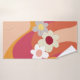 Design rétro coloré Abstrait avec fleurs fleuries et décoration des vagues jaunes, oranges et roses sur arrière - plan rose pastel