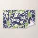 Fleurs, feuilles, vignes, bleu marine, blanc, vert