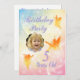 Un groupe de jolies petites fées de fleurs se pressent autour pour faire une belle invitation à la fête d'anniversaire