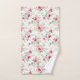 Belles fleurs roses, bleues et blanches avec de la verdure sur cet ensemble de serviettes de bain. L'ensemble comprend une serviette à main, une serviette de bain et un gant de toilette. Peut être acheté en ensemble ou individuellement.