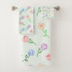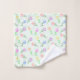 Cet ensemble de serviettes a un design moderne du milieu du siècle des cercles et des parties de cercle faites pour ressembler à des fleurs avec des tiges faites par des lignes continues, répétant à travers le design.