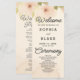 Présentez notre programme de mariage blanc romantique, une incarnation étonnante de l'élégance et de l'amour, conçu pour améliorer la beauté de votre journée spéciale. Ce programme de mariage exquis présente un arrière - plan blanc immaculé qui symbolise la pureté, l'unité et le début d'un beau voyage ensemble. Délicatement orné de feuilles bleus et violets enchanteurs, ainsi que de fleurs violettes captivantes, le design saisit l'essence du romantisme et le charme de la nature. La palette de couleurs soigneusement entretenues, blanc, bleu, violet, noir et gris, crée un contraste captivant, offrant un festin visuel pour les yeux. La toile de fond blanche représente la pureté et la sincérité de votre engagement, tandis que les feuilles bleus et violets signifient profondeur, harmonie et croissance dans votre relation. L'ajout de fleurs violettes ajoute une touche de sophistication et une pop de couleur, élevant le design à de nouveaux hauteurs de romance et d'élégance. Le texte du programme est présenté en noir et gris classique, en utilisant une simple police de caractères qui assure clarté et lisibilité. Ces tons neutres fournissent une toile intemporelle pour les détails de votre cérémonie, assurant que vos invités peuvent suivre sans effort les procédures. Pour insuffler un élément d'enchantement et de grâce, les mots "Welcome", "Ceremony" et "Wedding Party" sont délicatement crées dans une police de caractères décoratifs. Cette police de caractères ornementée donne une sensation de fantaisie et de romantisme, ajoutant un charme délicieux à votre programme de mariage. Sur la couverture arrière, vous trouverez une liste émouvante des membres de la fête de mariage, présentée dans la même police de caractères élégante utilisée sur la couverture avant. Cette touche personnelle reconnaît non seulement le rôle important joué par vos proches, mais ajoute également un élément sentimental au programme, ce qui en fait un gardien chéri à la fois pour vous et vos invités. Notre romantique programme de mariage blanc avec des Feuilles bleus et violets et des fleurs violettes est plus qu'un simple guide d'évènements; c'est une oeuvre d'art qui capture l'essence de votre histoire d'amour et la beauté naturelle de votre journée spéciale. Ce programme de mariage est un souvenir significatif et précieux, qui préserve l'amour et la joie partagés le jour de votre mariage pour les années à venir.