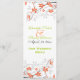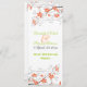 Fleurs Magnolia mandarine orange, vert citron carte à menu floral mariage, avec un magnifique design de branche de magnolia moderne avec des fleurs tangerine orange, bourgeons, un oiseau et texte vert citron. ivoire, vert citron, orange mandarine, noir, gris. Idéal pour un mariage de jardin de printemps ou d'été.