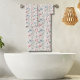 Belles fleurs roses et bleues sur un fond gris clair sur cet ensemble de serviettes de bain. L'ensemble comprend une serviette de toilette, une serviette de main et un gant de toilette. Ils peuvent être achetés ensemble en tant qu'ensemble ou individuellement.