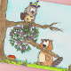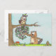 Un castor apporte un bouquet spécial au hibou d'anniversaire.