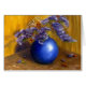 Fleurs pourpres à l'arrière-plan bleu de vase et