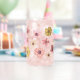 Retro vintage inspiré floral personnalisé peut verre créé à l'aide de belles fleurs d'aquarelle peintes à la main en rose et jaune. Ajoutez votre nom pour en faire le vôtre ! Art original de Leslie Larson.