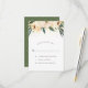 Un magnifique design de RSVP présentant une typographie élégante et une bordure de fleurs aquarelles roses. Derrière les fleurs, il y a une image de confettis dorés. Ces cartes se retournent sur un motif blanc simple sur fond vert.