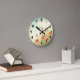 Fleurs sauvages roses Champ Pays Antique Vintage Monogramme Rustique Première horloge murale Personnalisée