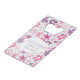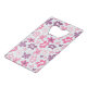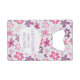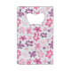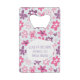 Un ouvre-bouteille pour un mariage ou un autre événement avec un motif floral mignon. Composé de fleurs irrégulières roses et violettes dans un style rétro des années soixante super. Petits coeurs bleus pâles, poivrez l'arrière - plan sur un fond bleu pâle. Un cercle blanc dessiné à la main est superposé, personnalisez avec vos propres détails.