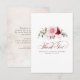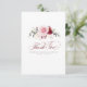 Carte de remerciement petite et élégante à fleurs rouges de bourgogne et roses aquarelles pour mariage, douche de mariée, fête de fiançailles, etc.