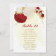 Fleurs romantiques rouges et blanches avec carte de sièges mariages botaniques feuille or Les détails de la parties scintillant sont simulés.
