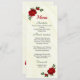belles fleurs rouges et feuilles verts sur l'élégant menu arrière - plan or pâle.