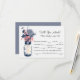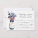 Carte RSVP LIB assortie, parfaite pour un mariage champêtre ou peut-être tout simplement parce que vous aimez les pots Mason ! Pot Mason suspendu à un crochet et rempli de fleurs sauvages champêtres. Fond blanc avec dessin d'un pot Mason rempli de fleurs sauvages champêtres. Les couleurs représentées sont bleu marine, bleu acier et rose corail. Si vous avez des questions sur ce design ou si vous souhaitez une modification de couleur, veuillez m'envoyer un courriel à paula@labellarue.com. N'oubliez pas de vérifier les cartes RSVP, de RÉCEPTION et de PLACEMENT DES INVITÉS assorties !