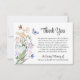 Envoyez des remerciements pour la gentillesse et la compassion dont vous avez fait preuve pendant votre période difficile avec ces cartes de remerciement mémoriales personnalisées qui mettent en vedette votre message personnalisé, fleurs sauvages d'aquarelle et papillons design. OPTIONS : L'échantillon est présenté en format 3,5x5" sur un papier blanc brillant et semi-brillant. D'autres tailles et types de papier sont disponibles sur la page de commande. ASSISTANCE : Pour obtenir de l'aide sur la modification ou la personnalisation de la conception, le changement de couleur, le redimensionnement, le transfert de la conception à un autre produit ou pour coordonner des éléments, contactez le concepteur AVANT DE COMMANDER via Zazzle Conversation ou makeitaboutyoustore@gmail.com.