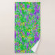 Serviette sertie dans un croquis de craie pastel motif de fleurs sauvages épars d'été, dans un champ de prairie verte