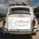 Ce design moderne "Just Married" ajoute une touche amusante à la voiture d'escapade du couple.