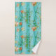 Une si jolie conception pour augmenter votre salle de bains. Cette belle serviette de bain a un motif floral magnifique sur un arrière - plan des rayures d'aqua. Les fleurs sont d'une manière élégante conçues dans des roses amortis et des oranges.