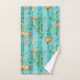 Une si jolie conception pour augmenter votre salle de bains. Cette belle serviette a un motif floral magnifique sur un arrière - plan des rayures d'aqua. Les fleurs sont d'une manière élégante conçues dans des roses amortis et des oranges.