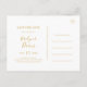 Cette élégante carte postale de faire-part de mariage à motif floral rose est parfaite pour votre mariage champêtre bohème, botanique printanier rose. Le design présente un cadre en feuille d'or accompagné d'une simple rose pêche champagne aquarelle, de feuillage de eucalyptus vert sauge minimaliste, et d'une fleur sauvage coquelicot corail neutre moderne unique. Le design est luxueux, idéal pour un mariage classique, chic, délicat en été, automne ou hiver. N'hésitez pas à nous contacter pour toute question concernant le design du produit ; à votre santé !