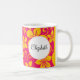 Un assortiment de fleurs tropicales dans les tons jaune vif recouvrent le rose chaud pour faire de cette tasse la meilleure façon de commencer la journée. Le nom ou le message customisé se démarque par un cercle blanc. Disponible en couleurs alternatives avec des produits correspondants.
