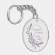 Ce beau porte - clé a une élégante couronne fleurie avec des fleurs violettes et s'inclinent contre un arrière - plan blanc, et les mots Chaque moment est une bénédiction Chaque jour est un cadeau.