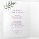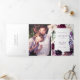 Des fleurs d'aquarelle dans les tons bordeaux, lilas doux, violet d'aubergine profonde et une paire d'orchidées rosâtre avec des plantes vertes modernes comme les fougères et l'eucalyptus dans ces invitations romantiques et élégantes de mariage de saumons. Un design triplé intelligent incorpore une photo, une carte postale RSVP, et insérer la carte dans une invitation de mariage.