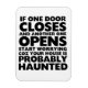Décor amusant pour votre maison douce ou pendant Halloween. Si une porte ferme et une autre s'ouvre, votre maison est probablement hantée.