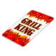Un amusant frigo aimant lecture Grill King en lettres fumantes et flammes rouge et orange.
