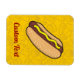 Illustration de hotdog. Les aliments indésirables entourent les icônes jaune motif arrière - plan. Texte personnalisé.