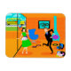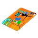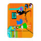 Ce Happy Retro Parents Flexi Magnet montre une mère et un père se réjouissant quand leur enfant fait un trait pour le bus scolaire. Le duo de célébration est dans leur style années 60, moderne du milieu du siècle, salon. La décoration orange est tout sauf sobre. Cheminée à cône turquoise, chaise d'oeuf bleu vif contre mur en pierre orange. Sur le mur, vous trouverez l'impression en toile Stretched Art Moderne du milieu du siècle, disponible au magasin Zazzle de StrangeLittleOnion. Au sol, il y a un lecteur portable bleu et noir avec plusieurs albums de vinyle éparpillés à proximité. Papa, porte un costume noir avec une chemise bleu clair et une cravate bleu foncé. Il dévoile tous ses meilleurs mouvements de danse, le genre de ceux qui amèneraient des rouleaux oculaires de juniors. Maman porte une robe verte et vibrante et un tablier blanc et vif avec garniture bleue. Elle est debout devant des portes coulissantes en verre en agitant joyeusement tandis que son enfant court sur le trottoir avant vers le bus scolaire jaune qui attend. A travers les portes, on peut voir leur pelouse de banlieue parfaitement entretenue et leur proverbiale clôture blanche pour piquetage. Même l'arrière - plan est satisfait d'un ciel turquoise et des silhouettes de cèdres. Quand l'enfant est absent, les parents joueront !