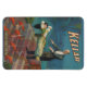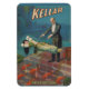 Aimant brillant représentant le grand magicien Harry Kellar exécutant un tour de lévitation.