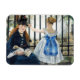 Manet L'aimant ferroviaire. Peinture à l'huile sur toile de 1873. L'une des peintures les plus célèbres d'Edouard Manet, La Chemin de fer ou La Gare Saint-Lazare (Le Chemin de Fer) dépeint le modèle Victorine Meurent assis devant une clôture en fer avec un livre ouvert et un chiot endormi dans ses genoux. A côté d'elle se trouve une petite fille dans une robe blanche mignonne avec un gros ruban bleu. La vapeur blanche d'un train en mouvement peut être vue derrière la clôture. Un bel exemple du sens réaliste du modernisme imminent de Manet. Un grand cadeau pour les amateurs de Manet, de célèbres peintures de chiots, de réalisme français et d'art moderne.