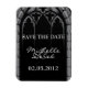 Mariage gothique Enregistrer la date Magnets. Grands magnets avec les noms des mariés et mariés, la date du mariage et le texte "Enregistrer la date". Cet aimant mariage gothique a un grand style et permettra à tous vos invités mariages qu'ils ont besoin de sauver cette date pour votre mariage! Cet aimant flexible présente une superbe architecture gothique noir et gris.