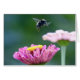 A Bumblebee in flight gathering pollen from zinnia to zinnia.