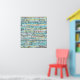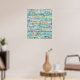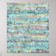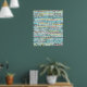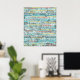 Background is textured and primitive in blues, yellows, pinks, coral, soft orange, greys,greens and white. Markings are in black. Would make a statement in your home or office. Great gift idea!