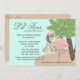 Lil' Toes to touch the sand and warm our hearts forever. Unique summer baby shower invitation with a flamingo instead of a stork. Baby is ready for summer with flip flops on!