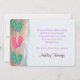 This pretty Bridal Shower invitation has a white background with a blue and sand coloured watercolor border on the left - reminding us of the beach. There are a pair of pink and orange flip flops with a pair of turquoise and lime green flip flops both above and below to create a fun border on the left side. On the front there is a sweet poem about the bride to be and the name of the bride you are honouring. Your invitation text goes on the back in purple. Perfect for a spring or summer bridal shower or wedding.