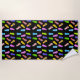 This beautiful beach towel features an adorable pattern of flip flop sandals in different colours and patterns on a black background.