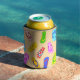 Keep your drinks cool with this can cooler featuring a cute and trendy pattern of colourful flip flops sandals on a sand coloured background. Perfect for a beach lover and sandals enthusiast.