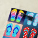 This beautiful beach towel features a pop art inspired pattern of flip flop sandals in different colours and patterns.