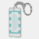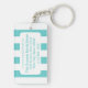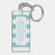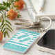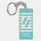 Bold aqua and white stripes with flip flops design, beach house or condo key chain with a place on back to add all of your important key return information if the keys are lost.
