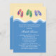 Modern bridal shower invitation perfect for a summer or spring event. Features three pairs of flip flop with beach waves. Ideal for a beach or ocean theme party. Warm and colourful. Add your own wording or get it as shown.