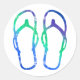 Weathered, vintage graphic of flip flops in blues, greens and teals.