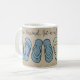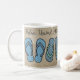 Soft coloured flip flops on a beachy background. Text across top: Relax... Unwind... Get in a flip flop state of mind.