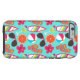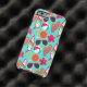 A fun summer beach party theme with flips flops, sunglasses, beach balls, flowers, surfboards, and margarita drinks on a teal turquoise blue scalloped background. Summer iPhone 6 Case