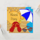 Fun surf, sand, red sunglasses red flip flops beach birthday party invitation.