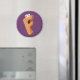 Flip from the Fliptoppers logo printed on a magnet with a purple background!